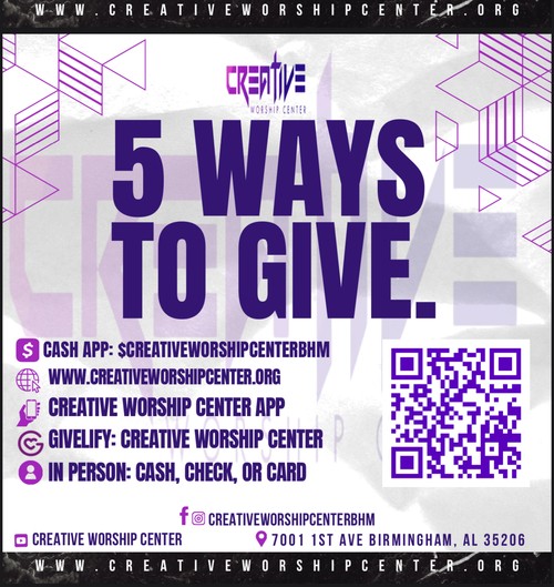 a. From the Cash App on your mobile device, send to $CREATIVEWORSHIPBHAM
